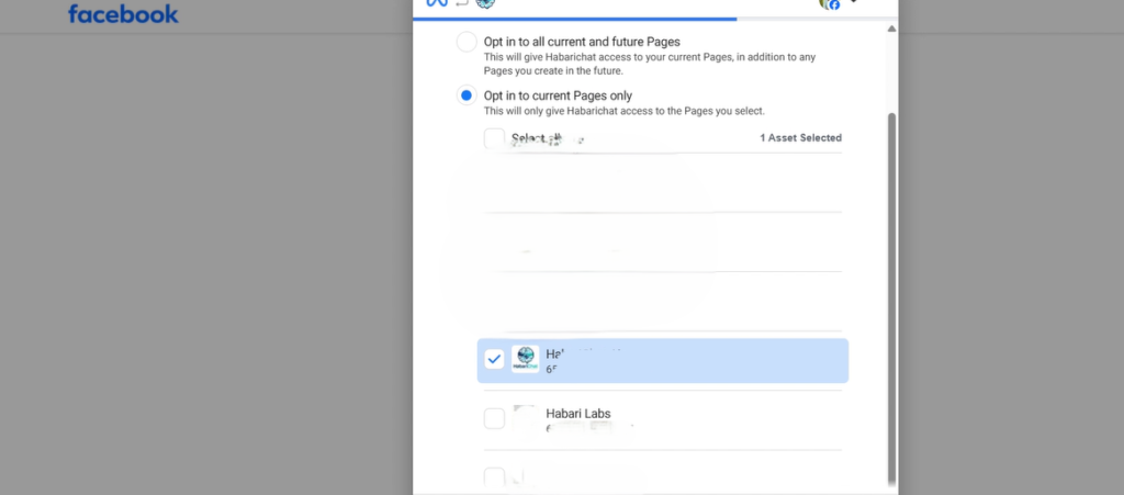 Step 3: Select the Facebook page you want to integrate. Presumably, this should be your Business page.
