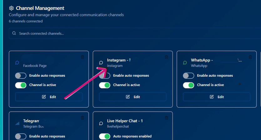 Step 11: You’re officially in! Your Instagram channel should appear on your interface as shown below. You can turn on automated responses.