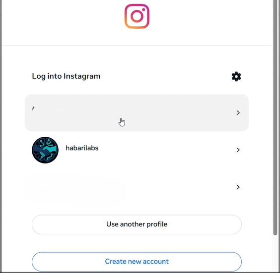 Step 5: Log in to your own or your business’s Instagram account (for example, “habari labs” as shown below.) Alternatively, if your account does not automatically appear, you can go to step 6.