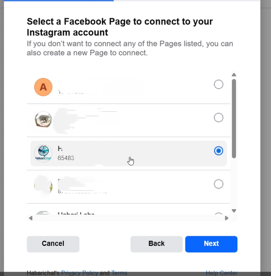 Step 7: Select the Facebook account that’s linked to your Instagram and press “Next”.