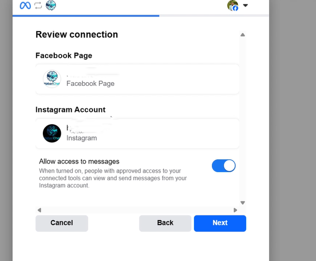 Step 8: This step ensures that HabariChat is getting connected to the channels you intended. Kinda like, Safaricom’s “customer uko sure unataka kubuy minutes na fuliza?” but only once. It allows you to authorize Habarichat ai to access your page’s messages. Click “Next“