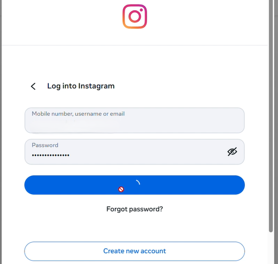 Step 6: Log in by in putting your Instagram channel’s email and password. Then click on “Log in.”