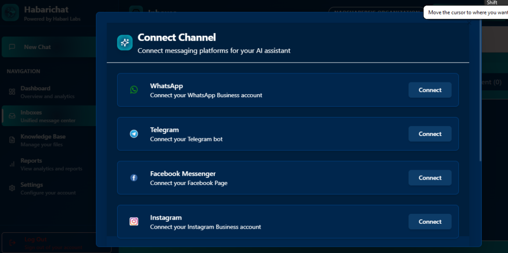 Bonus step: Try out your new system to get the feel of what your clients will be experiencing when interacting with HabariChat on your multiple channels.