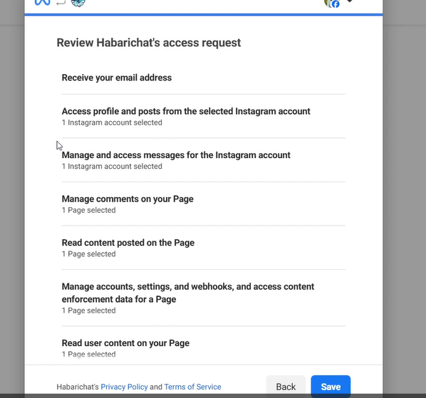Step 9: Review the permissions. This is to ensure that you give approval for HabariChat to access and manage your messages. Once done, click “Save.”